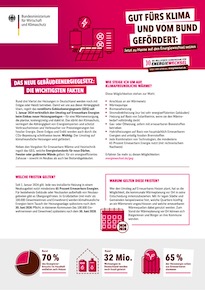 Das „Faktenblatt zum Gebäudeenergiegesetz“ vom Bundesministerium für Wirtschaft und Klimaschutz liefert essenzielle Informationen über den Wechsel zu klimafreundlicher Heiztechnologie und die damit verbundenen Vorteile. Es hebt die Bedeutung der Umstellung auf erneuerbare Energien für eine zukunftssichere, kosteneffiziente und umweltfreundliche Wärmeversorgung hervor. Zudem werden die umfangreichen Fördermöglichkeiten für den Heizungstausch und energetische Sanierungsmaßnahmen detailliert beschrieben, um Eigentümern den Übergang zu erleichtern und die Klimaschutzziele zu unterstützen. Die Broschüre ist eine unverzichtbare Ressource für alle, die ihre Immobilien energetisch modernisieren möchten und mehr über die staatliche Unterstützung erfahren wollen.