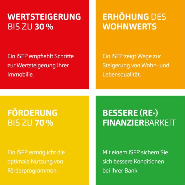 Vier Vorteile, die für einen individuellen Sanierungsfahrplan (iSFP) sprechen: